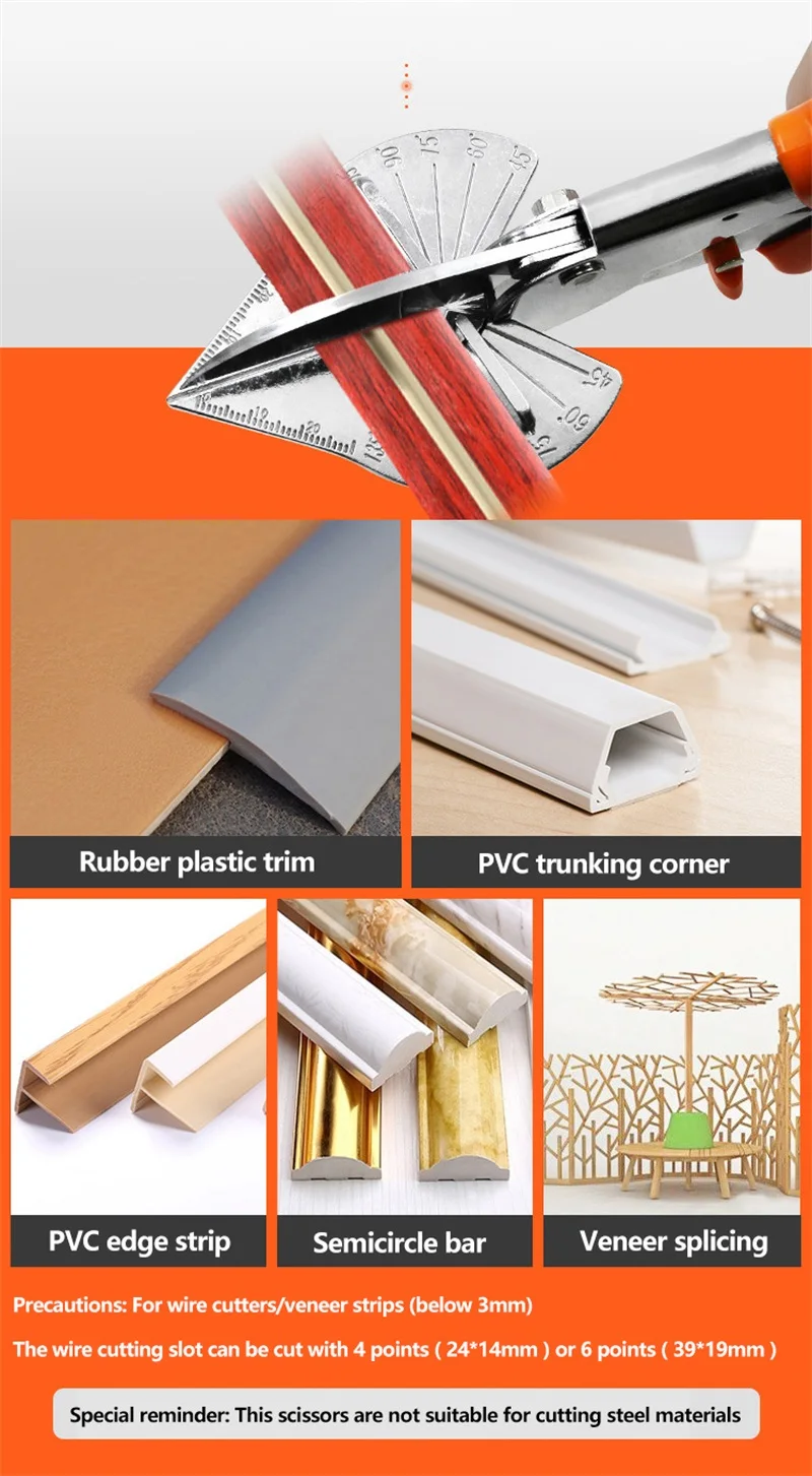 Multi-function Scissors Mitre Siding Wire Duct Cutter Angle 45-135° Multi Angle Cutting Wood Strip Plastic Pipe Hand Tools