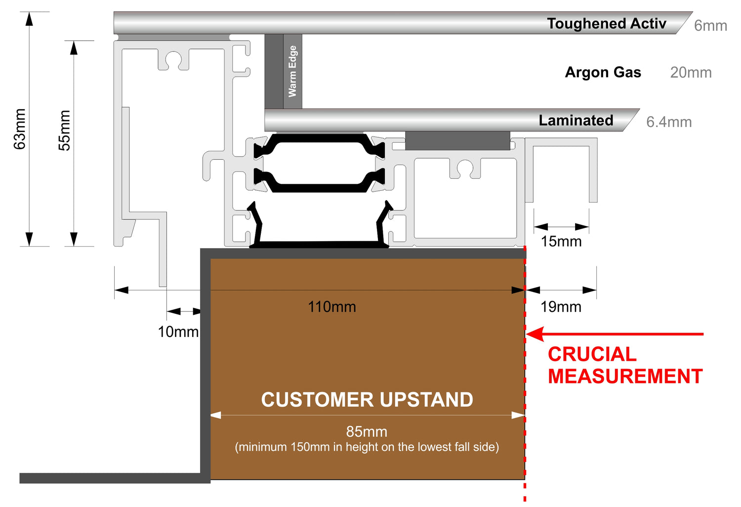 This thermally efficient rooflight has a very careful selection of high performance glazing components. It benefits from both low maintenance solar reflective glass outside and low emission heat soaked toughened or laminated glass inside, structurally bonded into the unique super-slim edge thermally broken aluminium frame providing a typical U-Value of 1.3 w/m2k (overall roof).