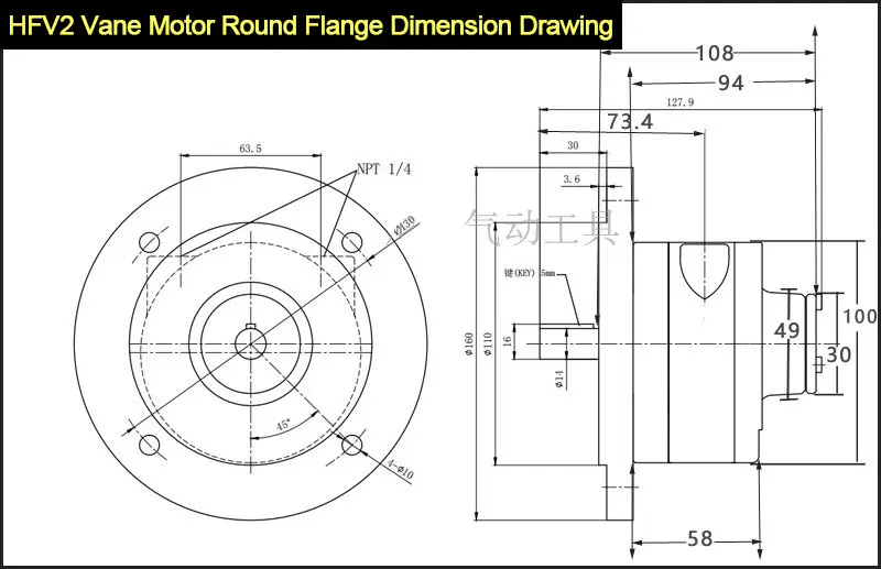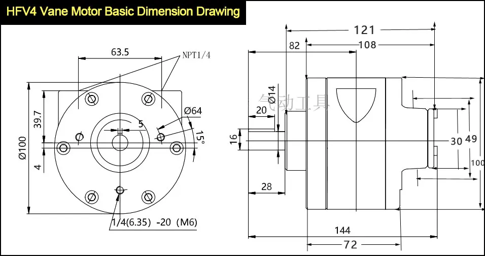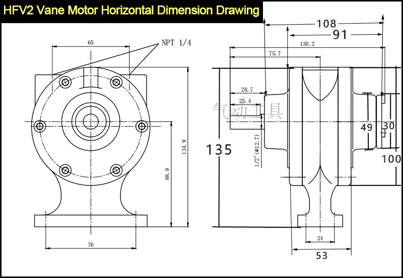 Air Operate Motor Vane HFV2 HFV4 Pneumatic Motor Industry With Gear Small Size And Large Horsepower Rotary Vane Air Motor