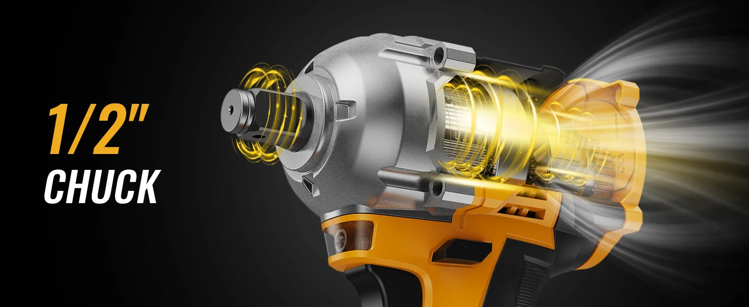 【3500 B/min impact frequency 】The impact wrench idle speed up to 4600 R/min, impact frequency (0-3500b/min) ,Thanks to the powerful speeds, you can get the job done faster and loosen stubborn nuts more easily.