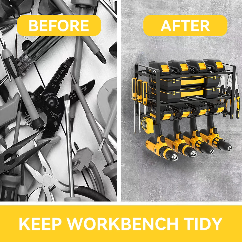 Power Tool Storage Rack Electric Drill Holder Wall Mount Organizer Shelf Wrench Tool Workshop Garage Screwdriver Kit Organizer