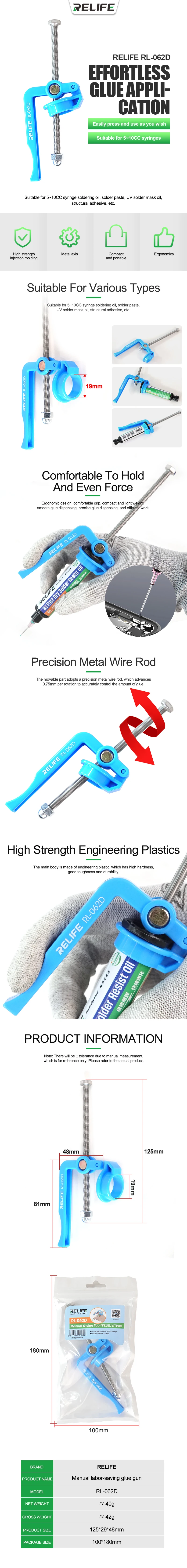 RELIFE RL-062D Manual Labor-saving Glue Booster for 5-10CC Syringe Soldering Oil High Strength Solder Mask Adhesive Propulsion Tool