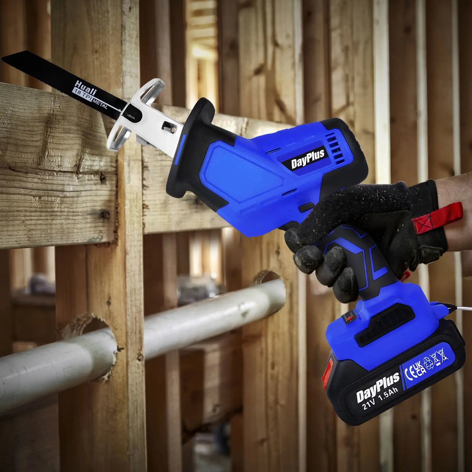 1. Powerful & Lightweight: Our cordless reciprocating saw has an extremely powerful motor made of pure copper, which reaches a maximum speed of 1900rpm for powerful cutting. The cordless reciprocating weighs only 1.15kg, which is a lot lighter than traditional reciprocating saws. Compact and lightweight design allows one-hand using, suitable for all kinds of cutting conditions and simplifies overhead work.