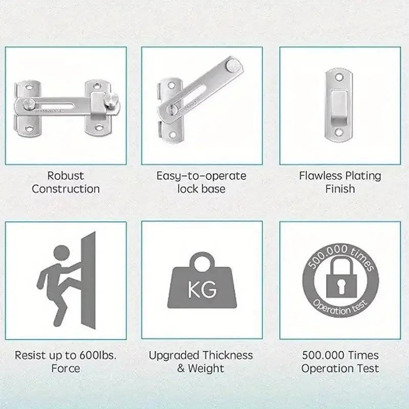 • Stainless Steel Construction :Crafted from durable stainless steel, this sliding barn door lock offers superior strength and longevity, ensuring reliable performance for years to come.