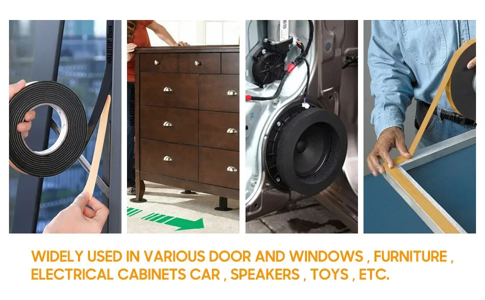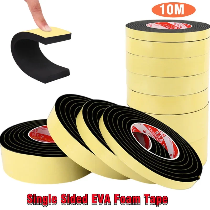 10M EVA black single-sided sponge tape Rubber Seal Strip Strong Adhesive Door Window Weather Stripping Shockproof Anti-collision