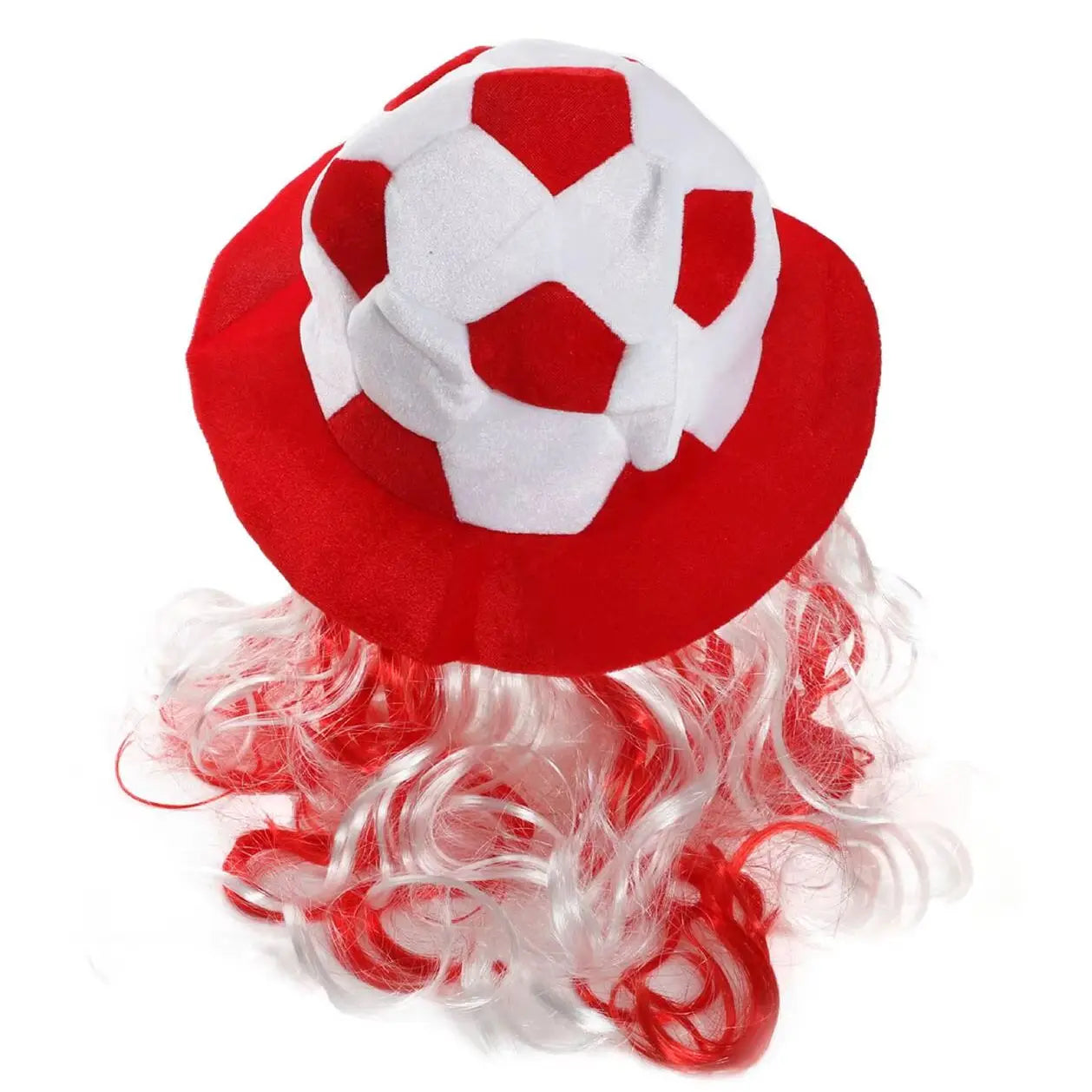 Football Hat - Red & White Football Hat with Attached Red & White Hair - Adults Sports Supporters World Cup Euros Accessory