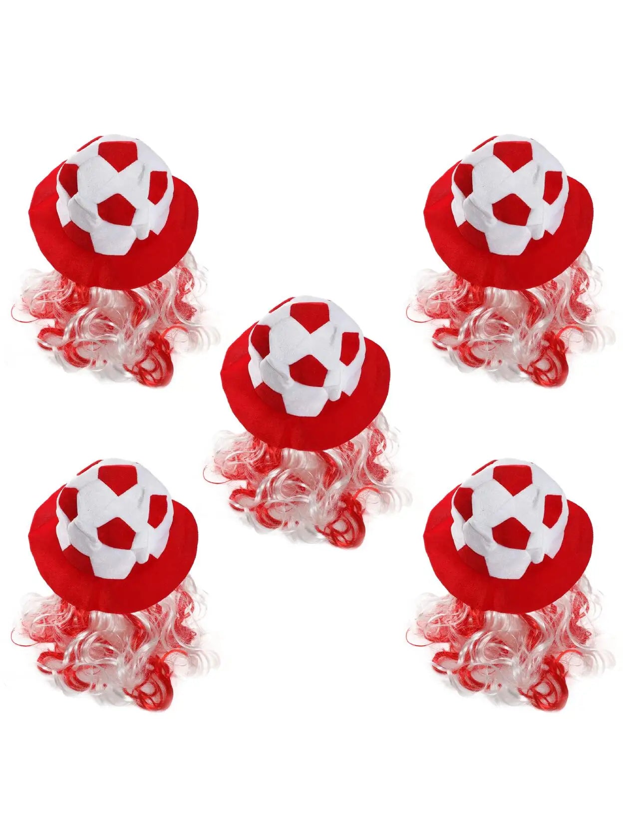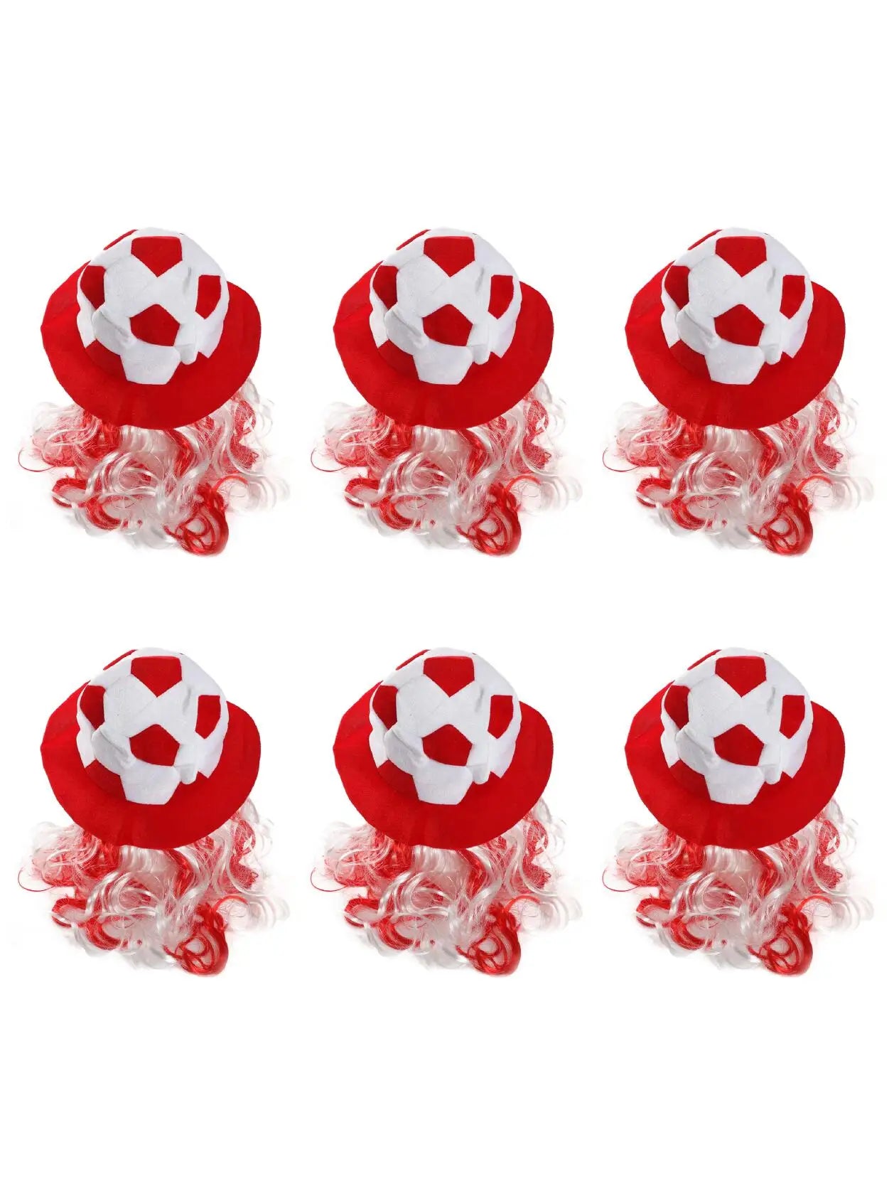 Football Hat - Red & White Football Hat with Attached Red & White Hair - Adults Sports Supporters World Cup Euros Accessory - Pack of 6 / UNITED KINGDOM is backordered and will ship as soon as it is back in stock.